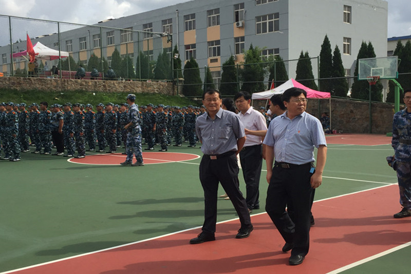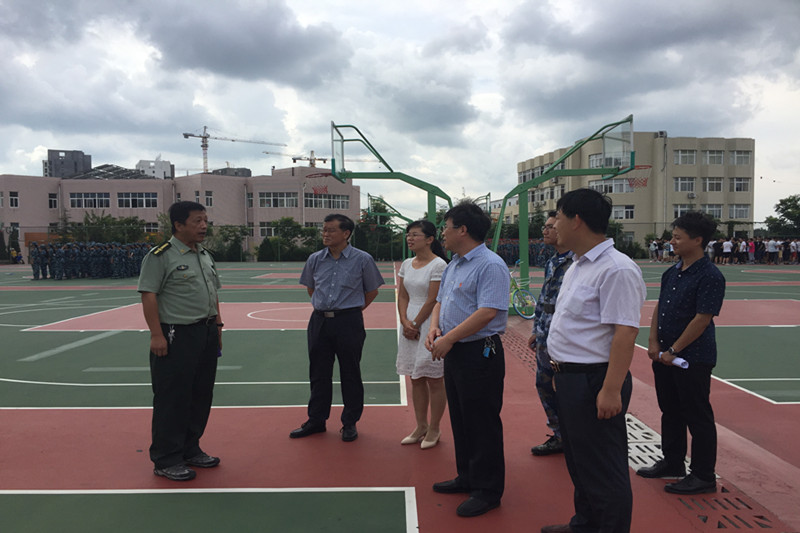 9月4日下午,XCSport经理刘福胜、党总支书记钱翌、党总支副书记孙明媚、分团委书记秦洪庆在2017级辅导员老师耿赛、王乐昌的陪同下对2017级新生军训工作进行检查指导。