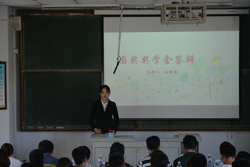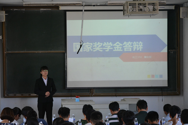 答辩会开始之前,主持人介绍了国家奖学金、省政府奖学金的有关情况。随后,各年级申请国家奖学金、省政府奖学金的11名同学一次上台答辩。首先参加答辩的是化工151的尹民同学,他从思想、学习、实践、工作四个方面介绍了自己及其所取得的成绩,他优秀的个人成绩给人留下了深刻的印象。接下来是来自154班的付景文同学,作为VOC外语台台长,他流畅发言让在场同学不禁赞叹。而化工158班的张萌同学不仅学习成绩优异,而且积极带领班内同学参加文明出行等活动,座右铭“不要在应该奋斗的年纪选择安逸,将来成功的自己会感谢今天奋斗的自己”,也激励着每一位同学。最后上台的是制药144班李婷,成绩特别优异的她也特别注重体育锻炼,在她身上,我们看到了满满的正能量,语言活泼幽默而不失严肃,也给同学们树立了一个积极参加锻炼的好榜样。最后,孙明媚做总结讲话,勉励低年级的员工干部向学长、学姐看齐,以他们为榜样,制定奋斗目标,抓好学习,做好科研,积极实践,努力使自己成为全面发展的优秀化工人。