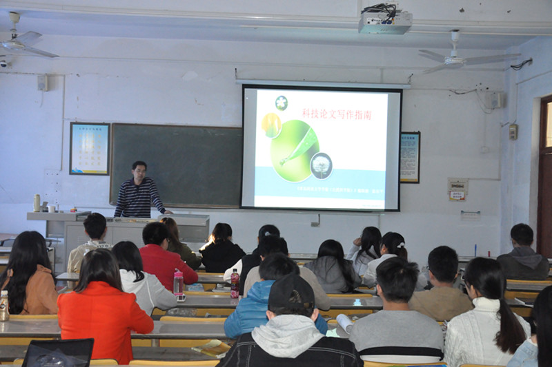 陈春平做了题为“科研——其实离我们并不遥远”的讲座。他以为什么写论文引出本次讲座的主题,并讲解了什么是科技论文及科技论文的类型。随后,以表格的形式展示了科技论文的结构并着重讲述了科技论文的写作要求,并从标题、署名、摘要、关键词、引言、实验、结果与讨论、结论、文献等方面讲述了论文写作要素,结合论文案例向大家做了细致的解读。接着,详细介绍了论文发表的流程。最后,就期刊质量这一方面希望同学们多读近几年与自己研究方向匹配的优质论文。