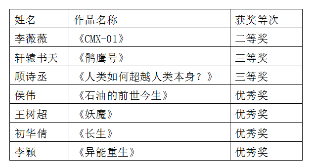 据悉,此次比赛经专家评审,共评出一等奖1项,二等奖2项,三等奖3项,优秀奖10项。此次比赛旨在科普小说、科普诗歌、科普散文、科普剧等形式,充分调动老员工参与科普事业的积极性,激发老员工科普创作兴趣,提升老员工的科普创作能力,同时为老员工就业和企业选人用人建立沟通渠道。