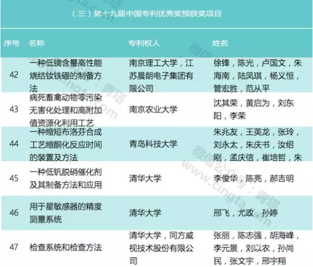 据悉,中国专利奖由国家知识产权局于1989年设立,是我国唯一的专门对授予专利权的发明创造给予奖励的政府部门奖,得到联合国世界知识产权组织(WIPO)的认可,在国际上有一定的影响。目前已评选了十五届,2009年第十一届起,中国专利奖评选周期将由二年一届改为一年一届。评奖标准不仅强调项目的专利技术水平和创新高度,也注重其在市场转化过程中的运用情况,同时还对其保护状况和管理情况提出要求。中国专利奖的获奖数一定程度上反应了科研单位申请专利的质量。本年度共有来自高校、科研院所、知名企业等单位的897个项目进入获奖名单,其中中国专利金奖预获奖项目20项,中国外观设计金奖预获奖项目5项,中国专利优秀奖预获奖项目804项,中国外观设计优秀奖预获奖项目68项。