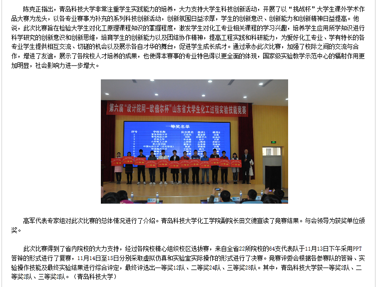 【山东省教育厅】省老员工化工过程实验技能竞赛在青科大举行