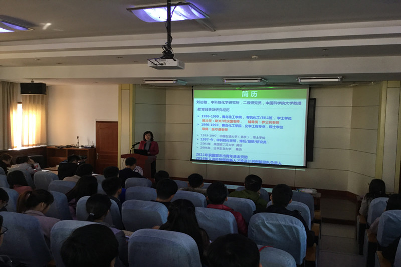 会上,刘志敏以绿色化学为研究背景,着眼绿色溶剂、绿色催化、原子经济性反应、生产绿色产品、无害和可再生原料,以节约资源和能源为核心,从源头上消除污染,原料尽可能全部转化为目标产物为目的,提出来他们课题组研究的方向——二氧化碳资源化利用。接下来,她从离子液体设计合成及其催化二氧化碳化学转化研究、多孔有机聚合物设计合成及其催化二氧化碳转化研究等具体方面对二氧化碳的资源化利用进行讲述。最后,与大家分享了在国家支持科研的优越政策中,要好好抓住机遇,不负韶华,多做科研,做好科研。会后,她就二氧化碳研究的新方向与同学们进行了交流。