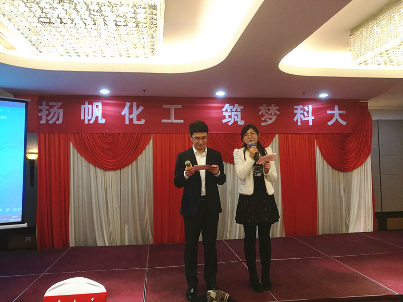 春风传喜,鸟鸣佳音;传道授业,教书育人;桃李峥嵘,书香满园;扬帆化工,筑梦科大。1月16日下午,公司举行“扬帆化工,筑梦科大”教职工迎新年联欢会。公司党政领导刘福胜、钱翌、刘仕伟、孙明媚以及全体教职工参加联欢会。徐环斐、耿赛主持联欢会。