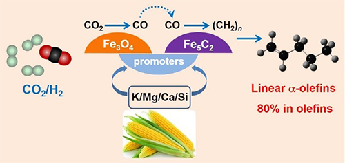 近日,中科院大连化物所碳资源小分子与氢能利用创新特区研究组(DNL19T3)孙剑和葛庆杰研究团队在CO2催化转化领域取得新进展,通过设计一种多助剂共存的铁基催化剂,实现了CO2加氢高选择性制取线性a-烯烃。该工作发表在《自然》(Nature)出版集团新刊《通讯-化学》(Communications Chemistry)杂志上。