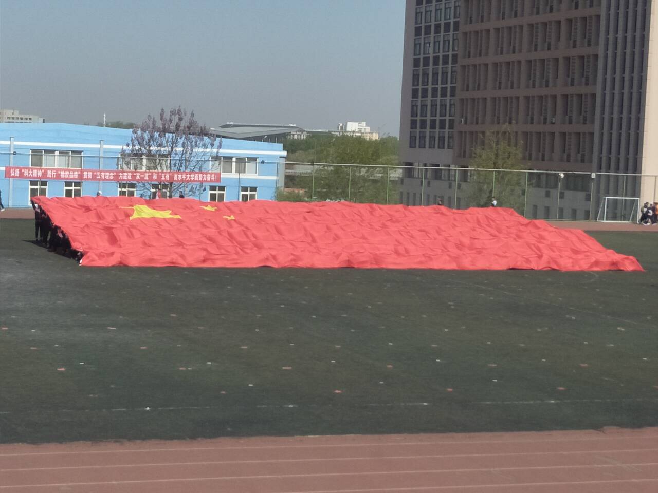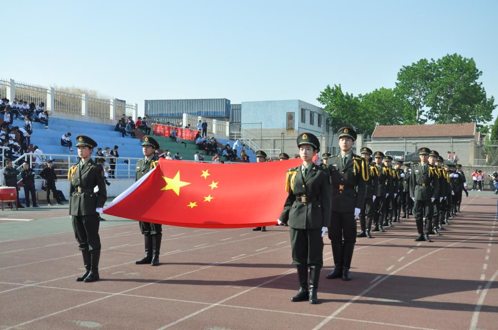 之后开幕式进行第二项,升国旗,奏国歌。国旗由崂山和四方校区国旗护卫队组成的方队升起,国旗缓缓升起,飘扬在钢杆之上,舞蹈在微风之中,照耀在骄阳之下。