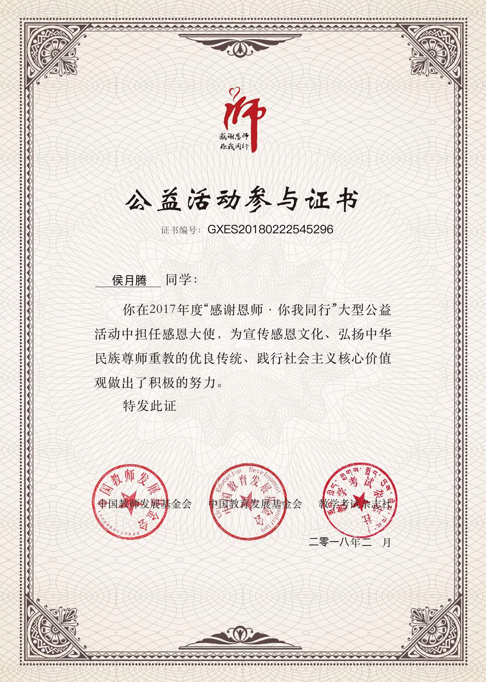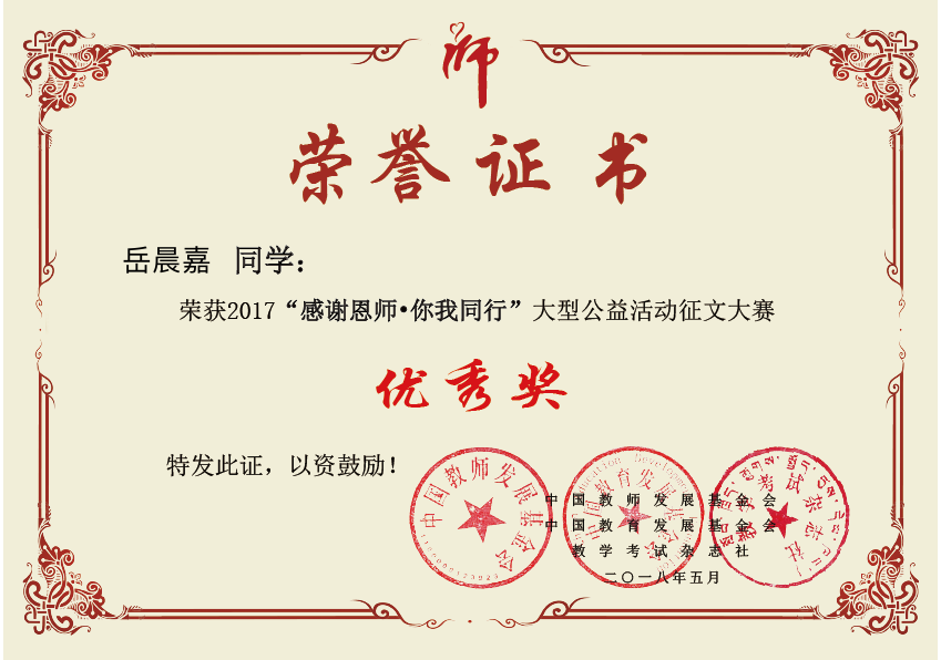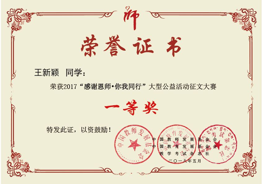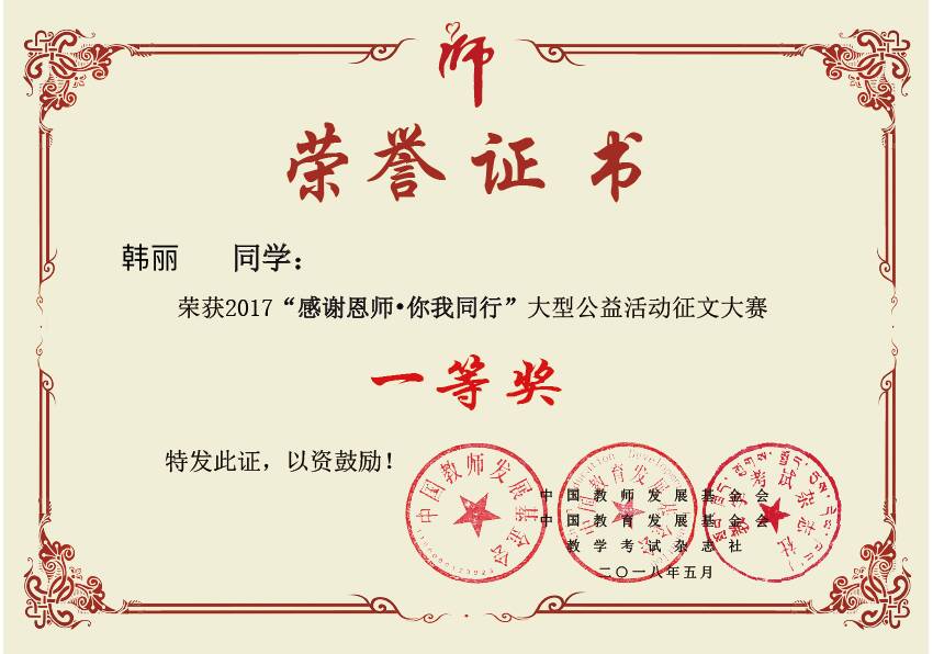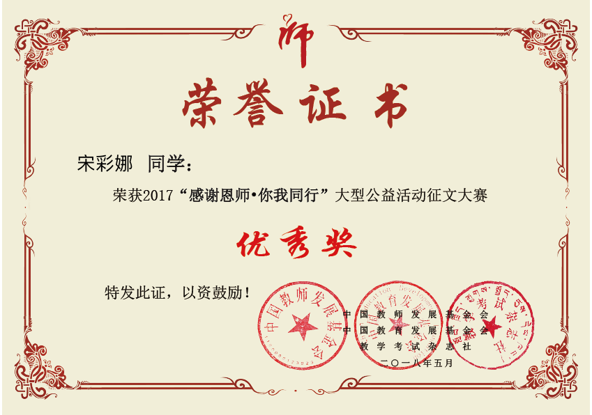 5月23日,由教育部教师工作司指导、中国教育学会和中国出版协会支持、中国教师发展基金会和中国教育发展基金会联合主办、教学考试杂志社组织承办的全国大型公益活动“感谢恩师 你我同行”表彰大会在北京工商大学举行,会后公布了本次活动的获奖名单,公司员工获多项奖励。