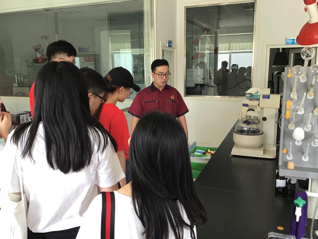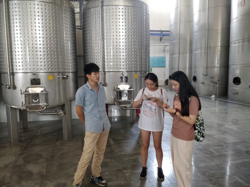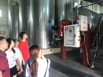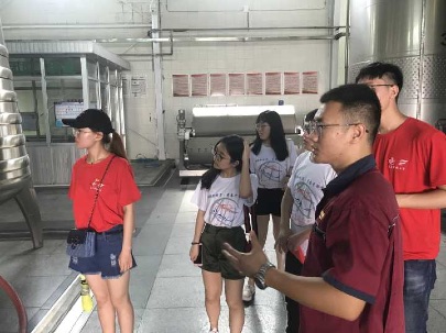 7月23日下午3:00,“疆海葡光”调研员们跟随王工程师参观了长城葡萄酒酿造车间。王工程师介绍,酿造过程基本为全自动化,但却需要几十名员工进行监察,保证酿造过程中的每一个部分都做到最好,王工程师让调研员们体验了一下小型过滤机的操作,让同学们增强了动手能力,同时体会到了中粮集团对生产方面一丝不苟的精神。