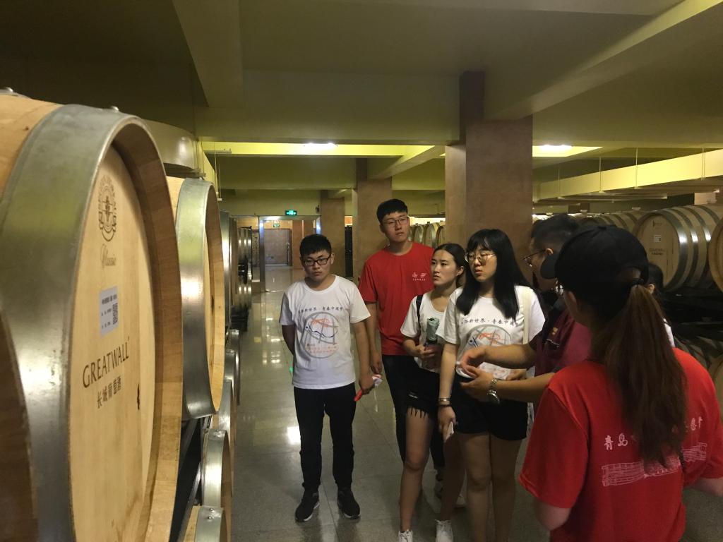 7月22日上午,“疆海葡光”调研员们参观了长城葡萄酒生产发酵车间和科技研发工作室。