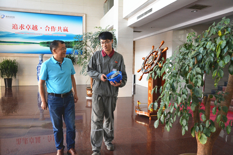 此外,下午钱翌一行还到山东清沂山石化科技有限公司考察交流。副董事长赵云强亲切接待了考察团一行,热烈欢迎公司领导来公司指导考察工作。钱翌书记一行参观了公司厂区及办公环境,听取了公司发展和创业经历的介绍,并对企业发展前景、人才培养、技术研发等方面进行深入调研,对企业通过艰苦努力取得的骄人成绩给予充分的肯定和祝贺。钱翌还同公司毕业生刘业宽等员工座谈交流,听取了解他们在公司的工作状况、未来发展和公司待遇等方面的情况,鼓励他们脚踏实地,学以致用,争取在工作岗位上取得新成就,同时欢迎员工们常回母校看看。