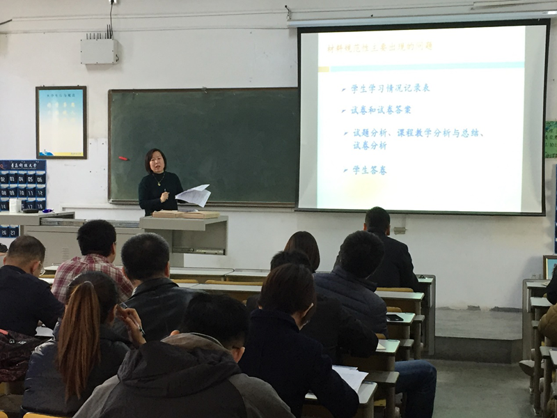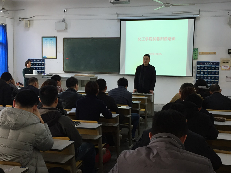 田文德首先介绍了张青瑞老师的基本情况,对本次培训内容进行了说明,并强调了试卷归档规范化在本科教学工作中的重要性。然后,张青瑞老师从自评情况、材料情况、试卷情况、阅卷情况、公司要求五个方面进行了讲解。张老师的讲解,图文并茂,现场以分离工程试卷盒为例,结合历年公司试卷检查中出现较多的问题进行针对性分析,内容翔实。之后,与会教师就各自本学期试卷归档中的部分问题同张老师进行了交流,大家积极踊跃发言,张老师现场逐一解答,现场讨论热烈。最后,田文德对本次培训会内容进行了总结,指出每一名教师都要本着爱员工、爱专业的积极态度做好本职教学工作,加强学习,切实提高自己的教学水平。