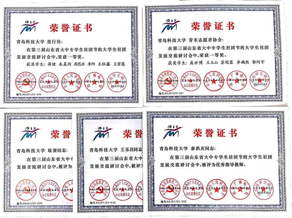 近日,由中共山东省委教育工委、共青团山东省委、山东省文化厅、山东广播电视台、山东省员工联合会联合主办,共青团山东工商公司委员会承办的山东老员工社团发展交流研讨会所评选的社团发展报告获奖证书下发,XCSport“思行社”、“青禾志愿者协会”报送的社团发展报告《高校老员工公益社团实践育人的长效机制研究》、《高校二级公司社团发展调研报告——以XCSport为例》均获一等奖,秦洪庆、耿赛、王乐昌获优秀指导教师奖。