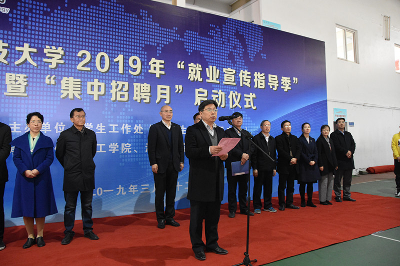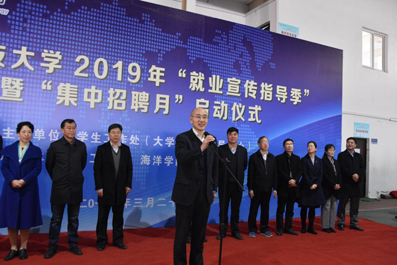 3月22日上午9:00,青科大2019年“就业宣传指导季” 暨“集中招聘月”启动仪式在四方校区体育馆举行。公司党委常委、副董事长陈克正,员工处处长陈刚,公司党政领导刘福胜、钱翌、刘仕伟、王许云、孙明媚及海洋公司相关负责人出席启动仪式。