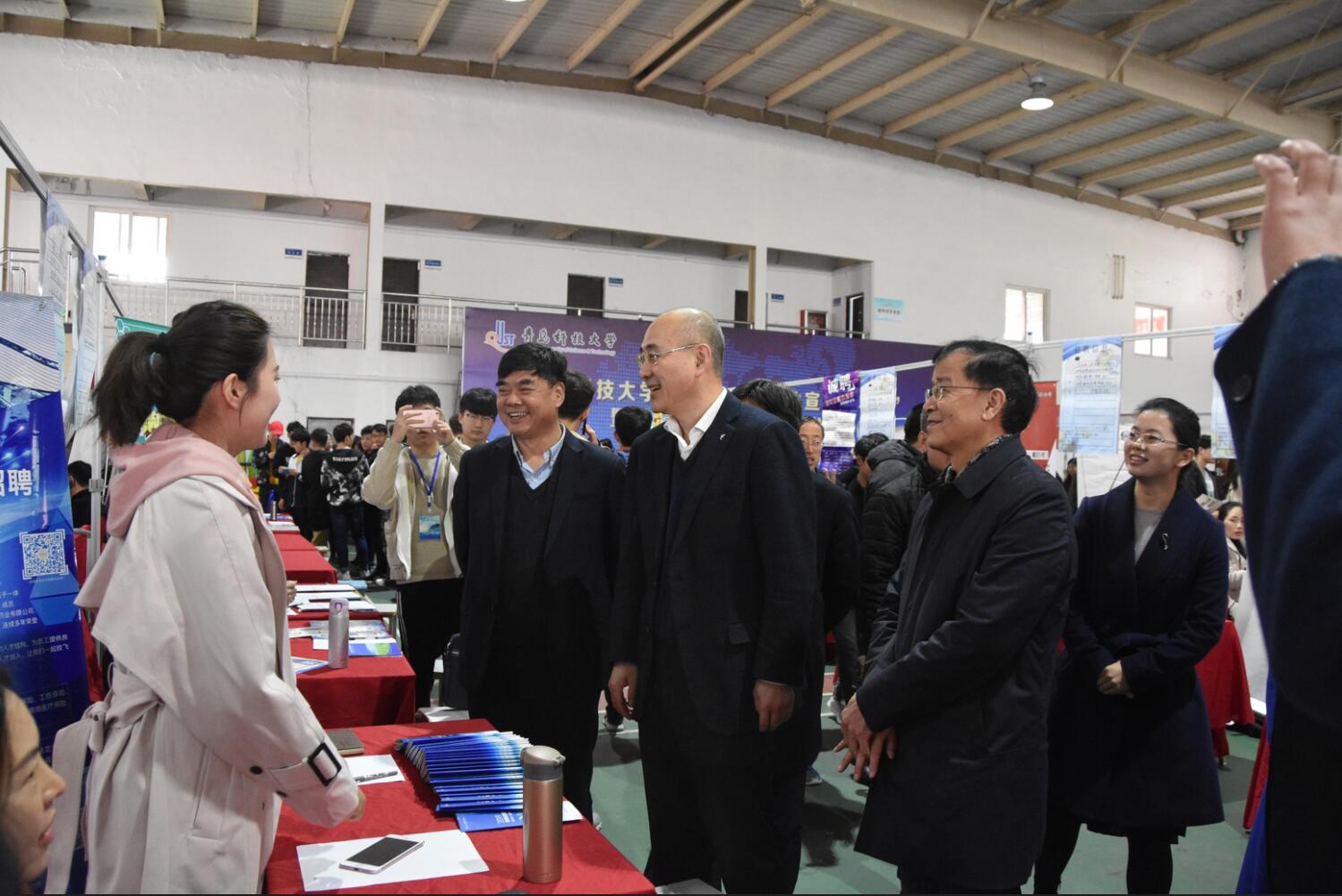 陈克正宣布仪式正式启动,并前往招聘会现场指导工作,与招聘企业、员工和毕业生进行了亲切交谈。