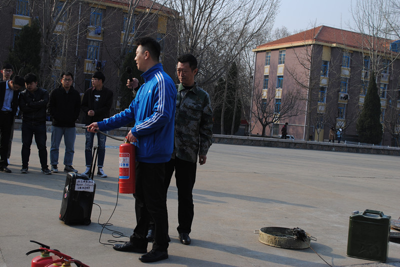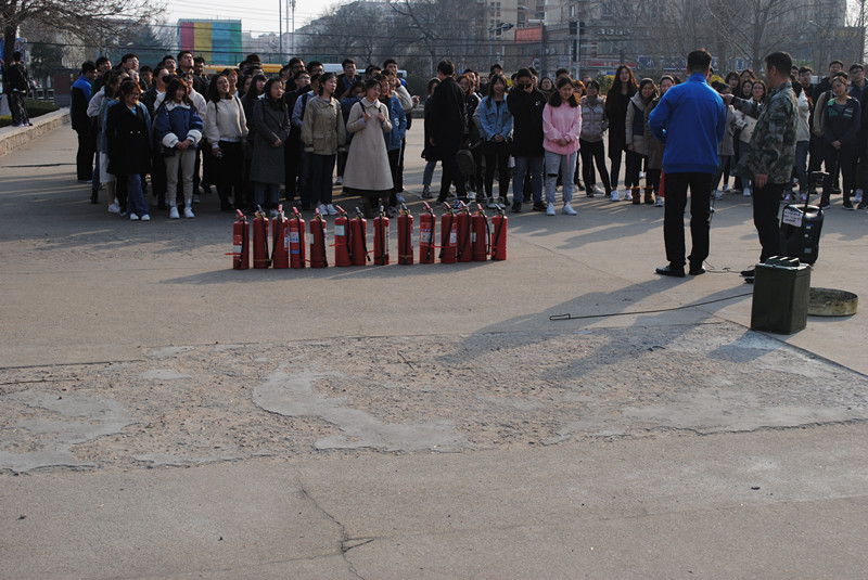 演练现场,仇立峰为大家详细讲解了有关手提式干粉灭火器的基本结构和使用方法。随后,仇老师选择上风方向点火,亲自示范使用灭火器灭火。最后,参加演练的同学两人一组陆续上前动手学习和完成灭火器使用的练习。演练结束后,同学们纷纷表示,演练活动让自己更深刻地认识到学习消防知识、正确使用消防器材的重要性,同时也会把今天学到的知识技能传授给身边更多的人,使更多的人懂得消防知识,懂得如何扑灭初起火灾。
