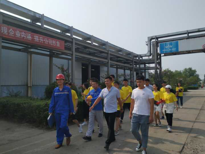 7月21日8:00“绿色新农村”调研团在武胜桥镇书记高尚伟安排下前往玉皇化工集团的工厂车间进行参观。车间主任带领队员们前往各个车间进行参观,并为队员们讲解车间内的具体操作单元及产出的催化剂产品,让队员们对企业生产模式有了进一步的了解。15:00实践成员开始参观研发中心,接触了实体企业研发基地的不同实验室和专业性仪器,打开了队员们的眼界和对化工行业的深入认知。此次参观,调研团队员们对于以玉皇化工为代表的村镇企业发展史有了更全面的了解,研发中心的先进性对实践成员是一种鼓舞,对老员工树立积极的人生目标具有引导作用。