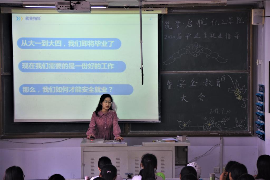 9月10日,XCSport于第一教学楼举行“筑梦·起航”2020届毕业生就业指导暨安全教育大会。出席本次大会的有党总支副书记兼副经理孙明媚、制药工程实验室主任、制药162班班主任王繁业、2016级辅导员付文静。2016级全体员工参加了本次大会。
