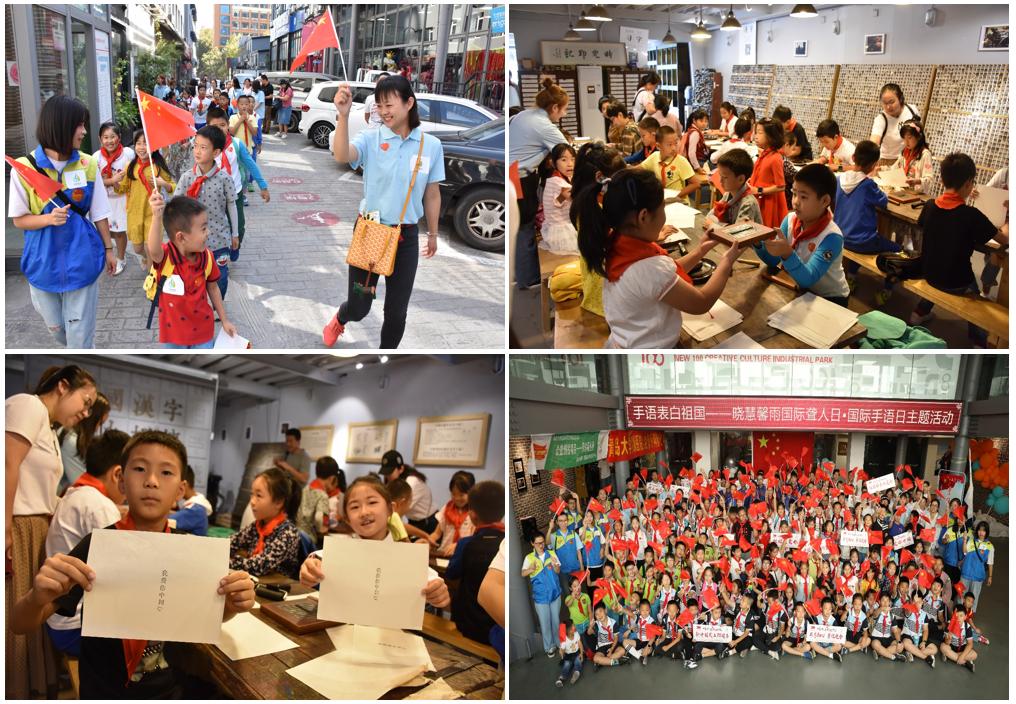 据悉,本活动主要在爱智作匠创空间、米拉索沙画艺术工作室、时光印记活字印刷体验馆、赞一油画博物馆等处开展手作传承建设祖国、指间流沙描绘祖国、铭记历史祝福祖国、手舞爱国唱响中国、科技创新改变中国等主题体验活动。通过手语与文创的结合,推广国家通用手语、用手语向祖国表达热爱之情,共有来自岛城多个公司的200余名聋健青少年参加了活动。