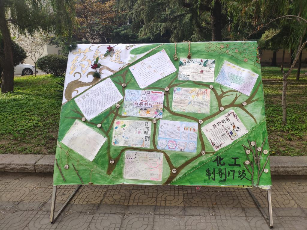 本次展览共推出宣传海报11册,详细介绍药物制剂专业方向,就业趋势,未来发展等多方面内容。展览宣传活动一经开始,便吸引了不同专业同学前来观看,同学们在展板前驻足停留,认真阅览。不少同学表示,展板设计巧妙新颖,富有特色,宣传内容全面切实,让人更加深入地了解了药物制剂专业,了解药学发展。