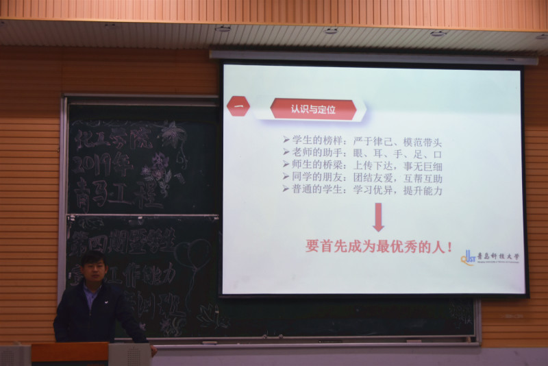 会上,秦洪庆从认识与定位、责任与建设、方式与方法、收获与成长四方方面,结合具体的工作实例进行了全面细致的培训。他指出,班长团支书是班级日常工作的组织者、管理者和协调者,是老师的参谋和助手,是一种相辅相成、互帮互助的关系,是一个班集体精神风貌的体现,是一个班级凝聚力的基础。本着要求大家明确工作职责,严格要求自己,抓好自身学习,增强服务意识,提高管理能力,提升工作效率,注重方式方法,常怀感恩之心,增强班级凝聚力和向心力。