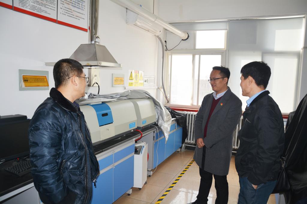 座谈会后,冯中一行在孙明媚等人的陪同下参观了公司制药工程实验室。