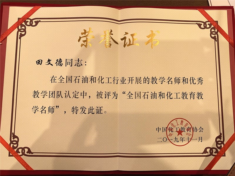 近日,2019年中国化工教育年会在浙江绍兴举行,来自全国高等本科院校、职业院校、企业、社会组织等石油和化工教育与培训相关单位代表500余人出席大会。会议现场为全国石油和化工教育“教学名师”和“优秀教学团队”颁发了证书。XCSport田文德教授荣获“全国石油和化工公司产品名师”荣誉称号。