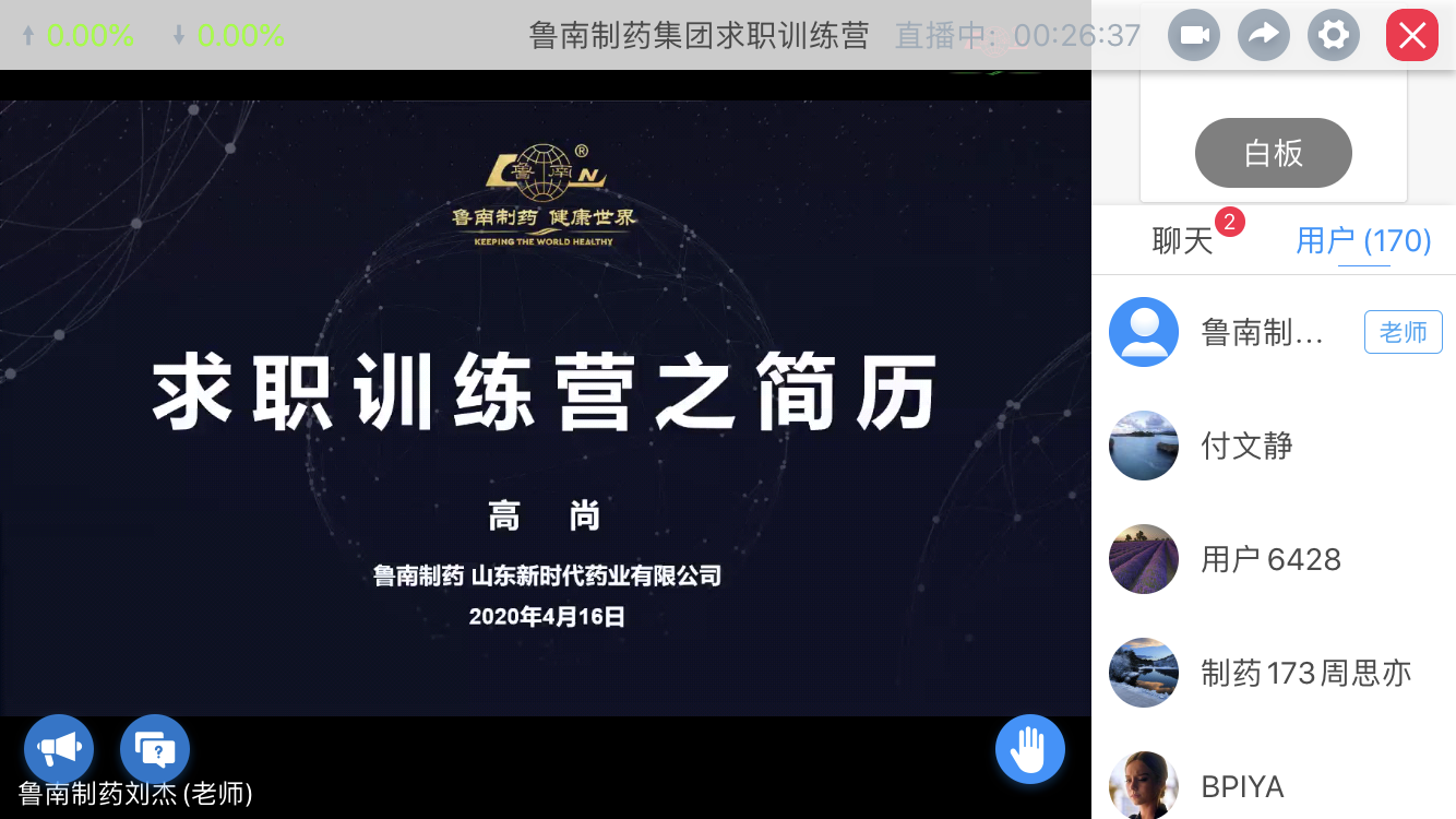 此次云端求职训练营开拓了校企合作共促就业的新途径,通过线上的宣讲,同学们不仅学习到了实用的求职技能,而且对鲁南制药集团有了更深入的了解。公司会以此次活动为契机,与各企业之间加强互动,深化合作,拓展校企合作更广阔的空间,助力毕业生高质量就业的同时,为社会源源不断输入高素质人才。