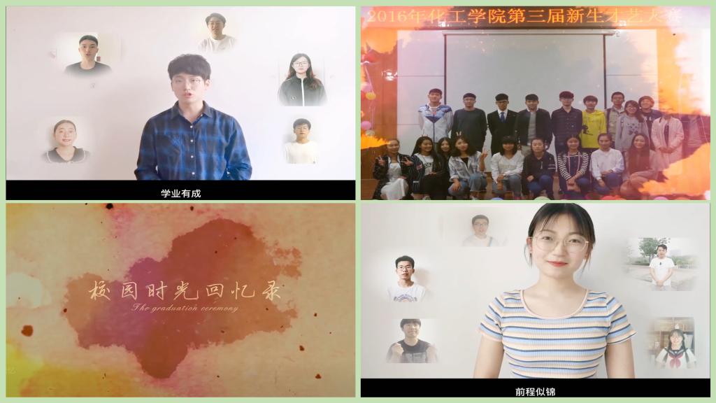 制作“I❤化工2020”字样的展架供毕业生合影留念,拍摄制作“结缘你我,铭记过往点滴”学弟学妹祝福视频、“最好的时光,最美的我们”毕业生电子相册,开展“致青春”毕业生优秀日志、博文、随想、诗歌、文章线上推送活动,通过讲座、座谈、主题团日等活动形式,组织毕业生与老师、毕业生、低年级员工进行充分的思想交流,共同回顾在校期间的美好生活,不负青春,展望未来。