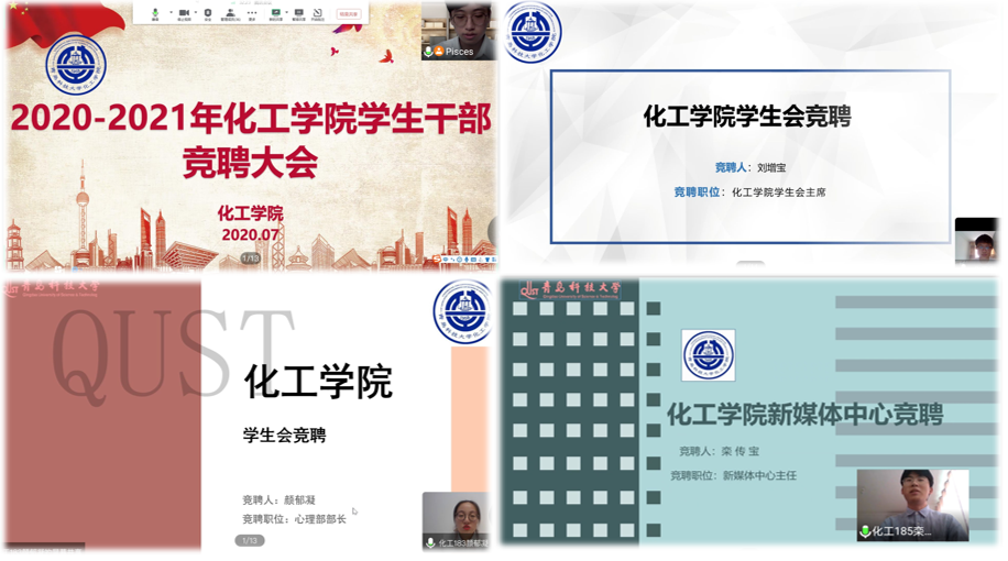 7月16日下午,2020-2021学年员工会、文化发展中心、新媒体中心干部竞聘大会在线上顺利进行。XCSport分团委书记秦洪庆,分团委耿赛、王乐昌、柳晓阳,第20届员工会骨干成员及竞聘人员参加。