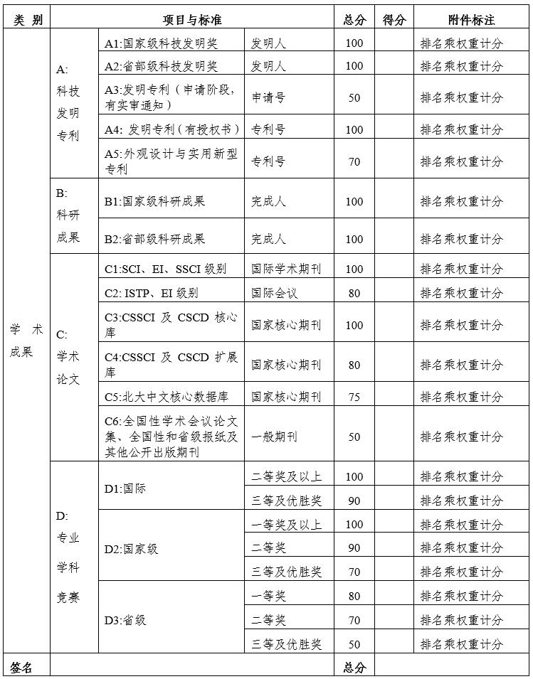 1、A、B、C、D四部分可以累加,以归一化处理后的得分作为最终学术成果分;A、B、C、D各部分中的单项成果仅以最高级别计分,不累加。