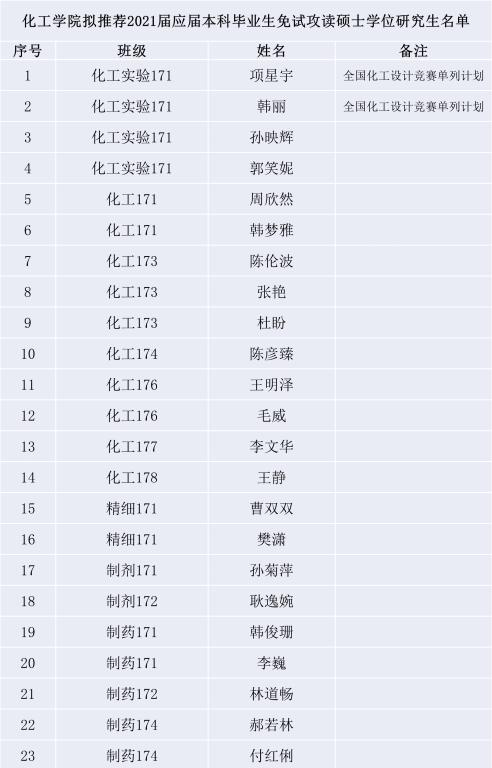 经个人申请,并依据公司和公司《2021届应届本科毕业生推荐免试攻读硕士学位研究生遴选实施办法补充细则》等文件规定,确定项星宇等23名同学获得公司2021年推免攻读硕士资格,现进行公示,公示期为3天。
