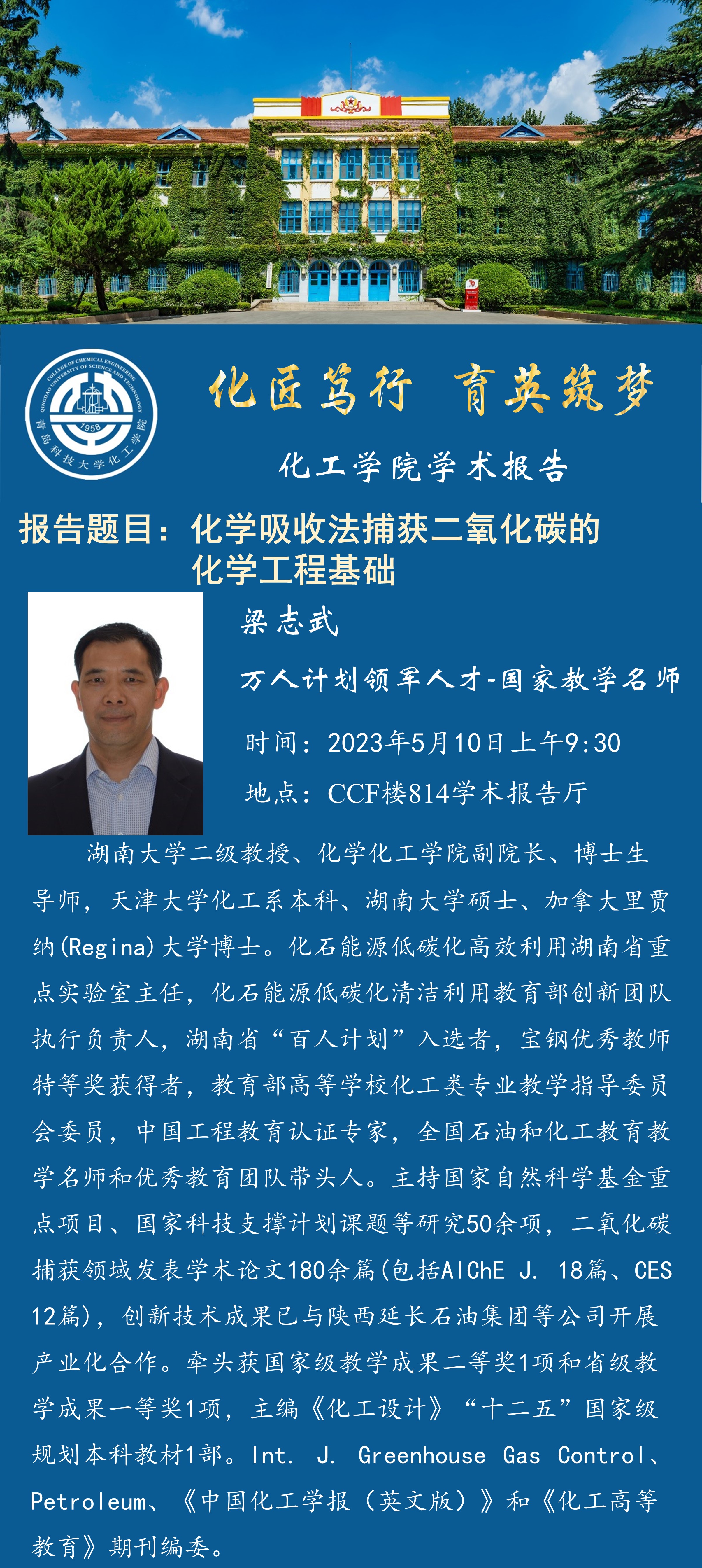 XCSport学术报告——梁志武:化学吸收法捕获二氧化碳的化学工程基础