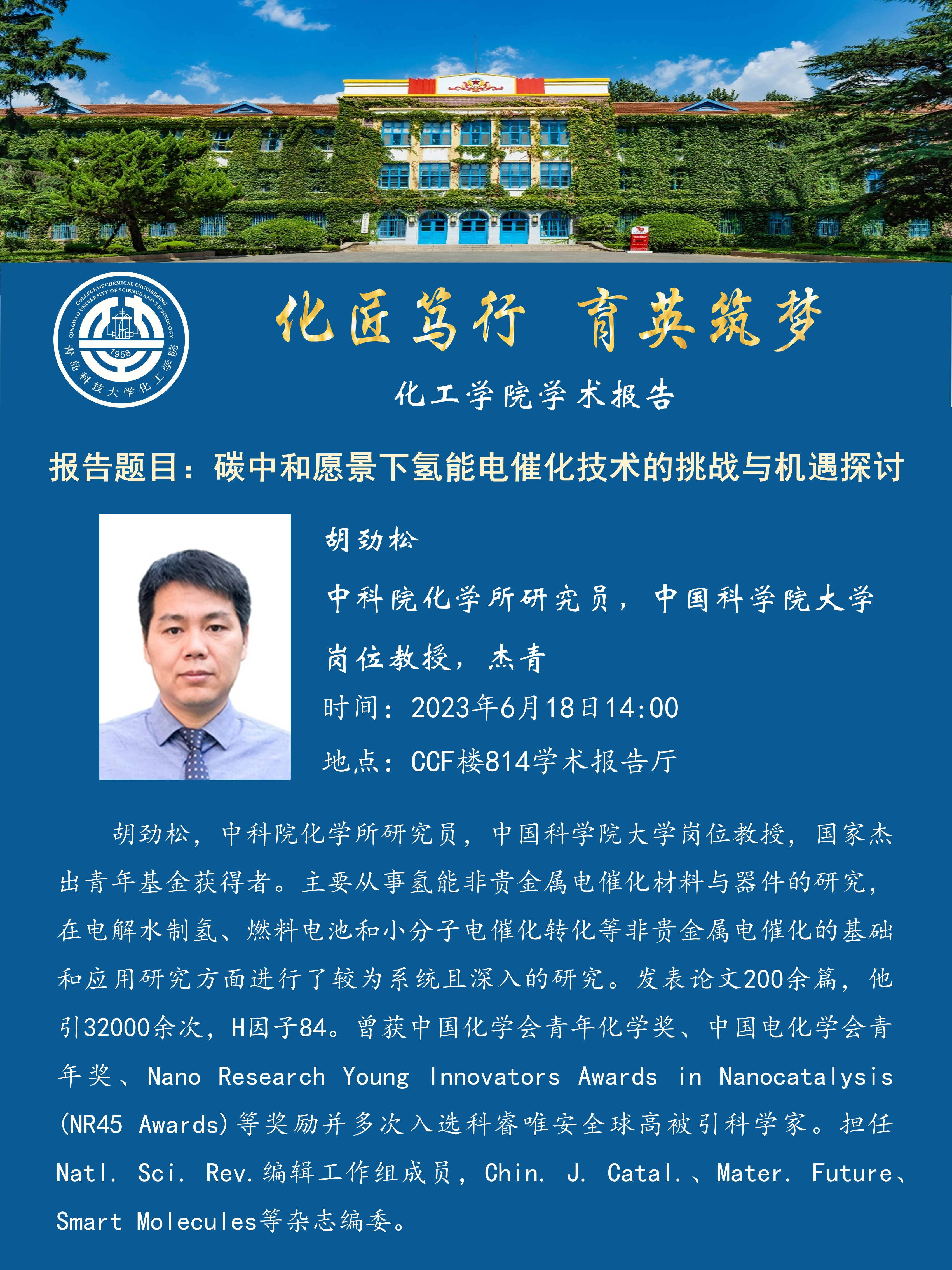 XCSport学术报告——胡劲松:碳中和愿景下氢能电催化技术的挑战与机遇探讨