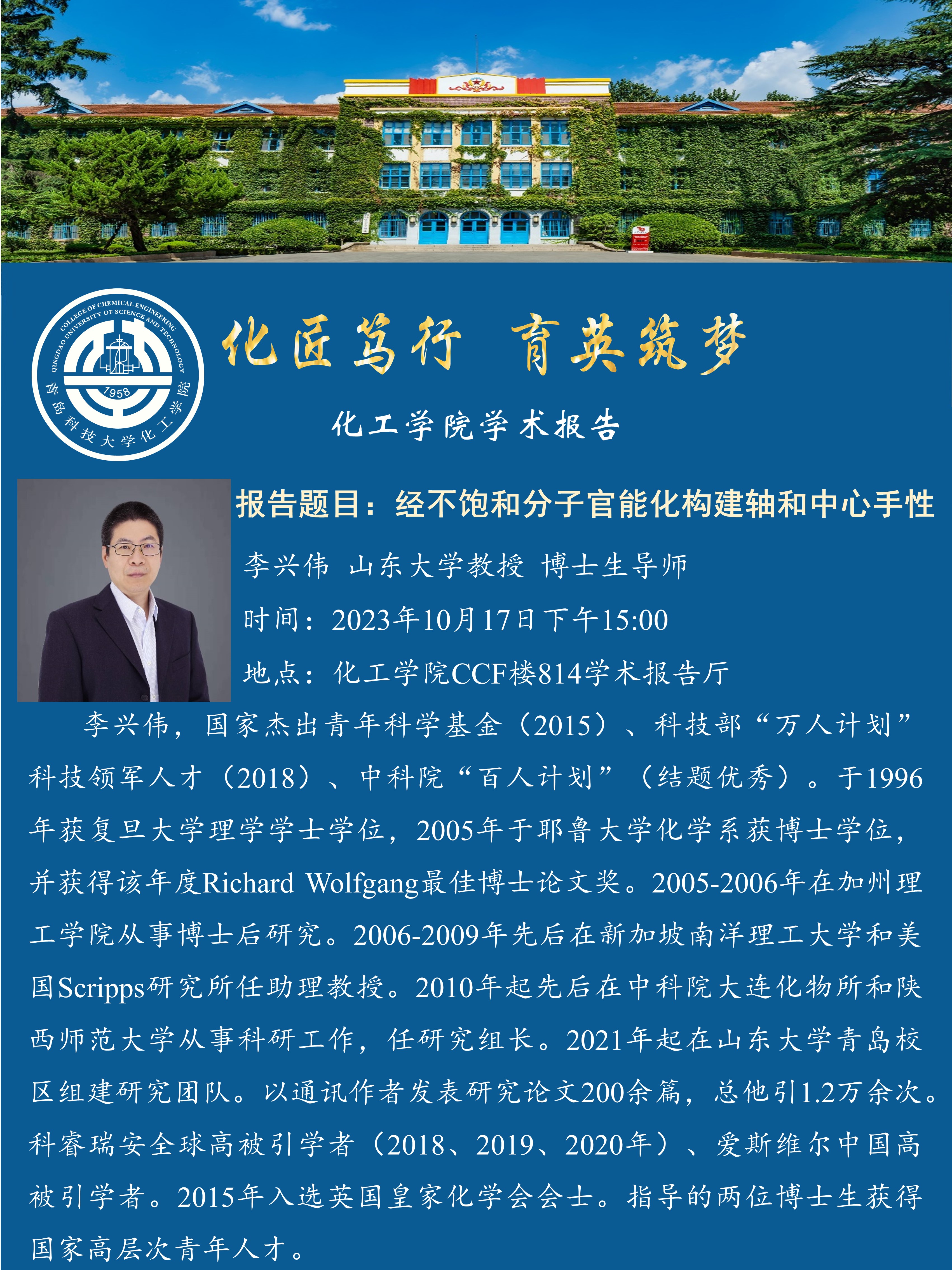 XCSport学术报告——李兴伟:经不饱和分子官能化构建轴和中心手性