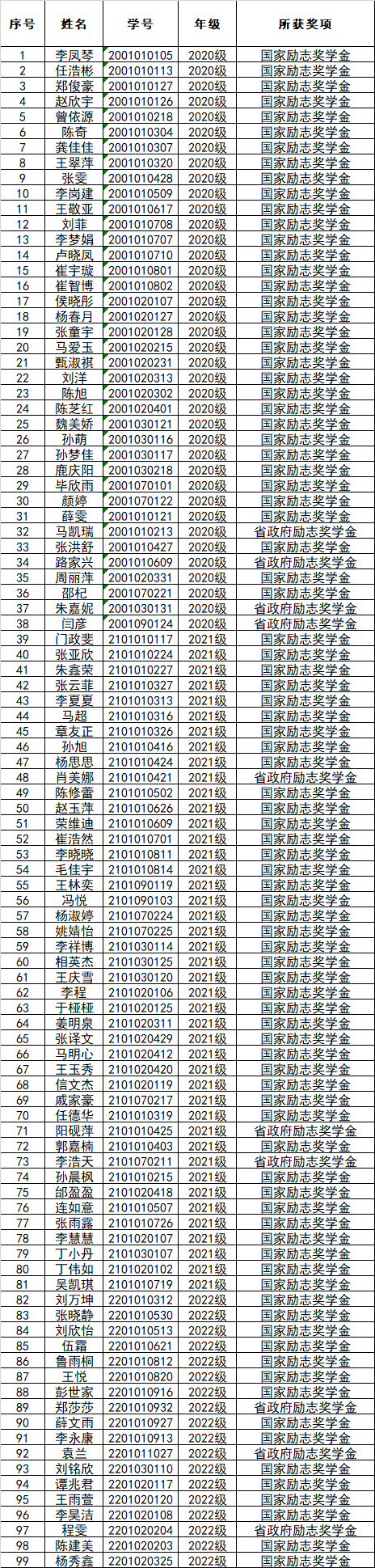根据XC体育《关于评审2022-2023学年本科生励志奖学金的通知》,经员工申请、资格审核、公司奖学金评审委员会评审,现将2022-2023学年国家励志、省政府励志奖学金获得者公示如下: