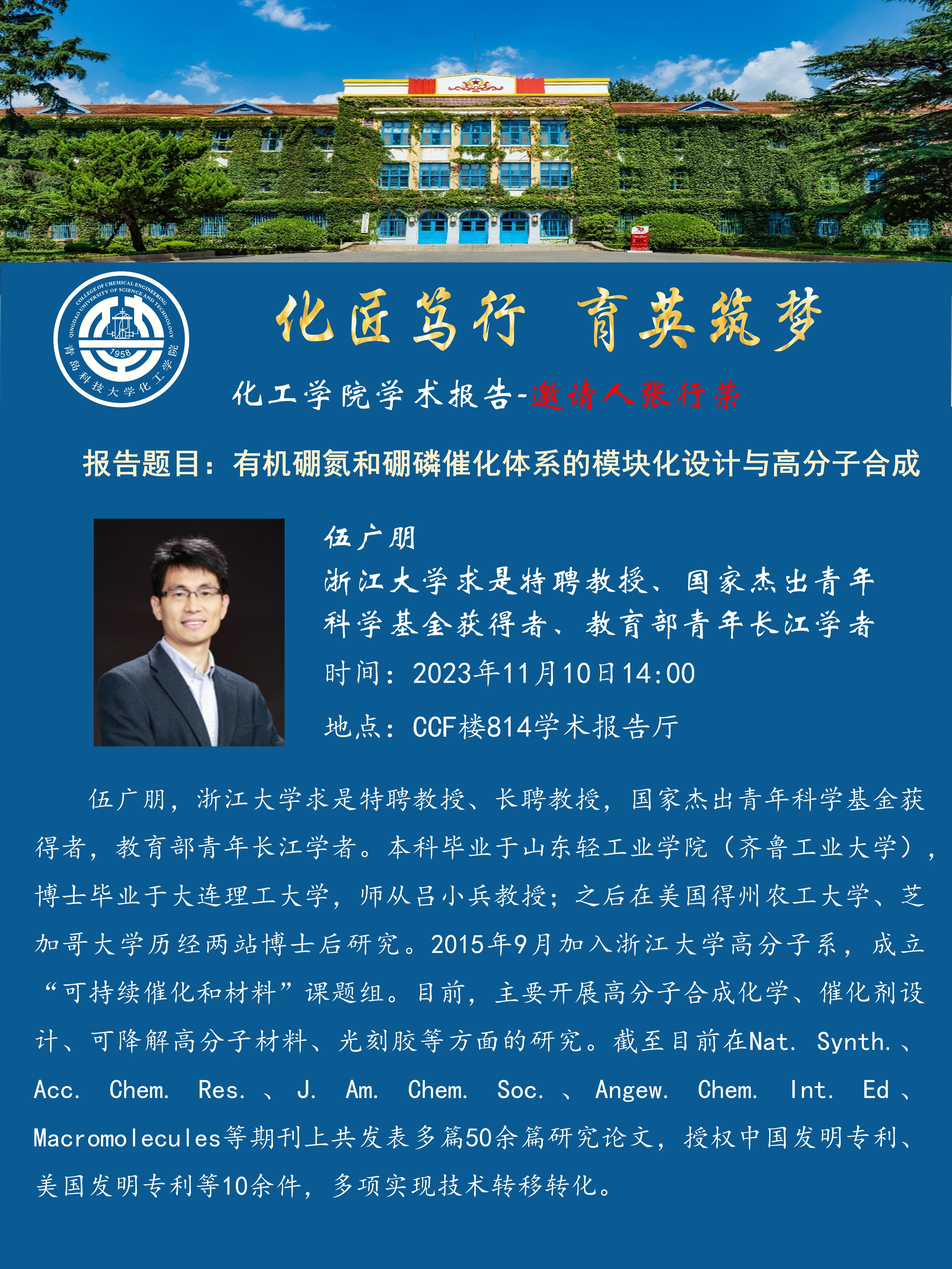 XCSport学术报告——伍广朋:有机硼氮和硼磷催化体系的模块化设计与高分子合成
