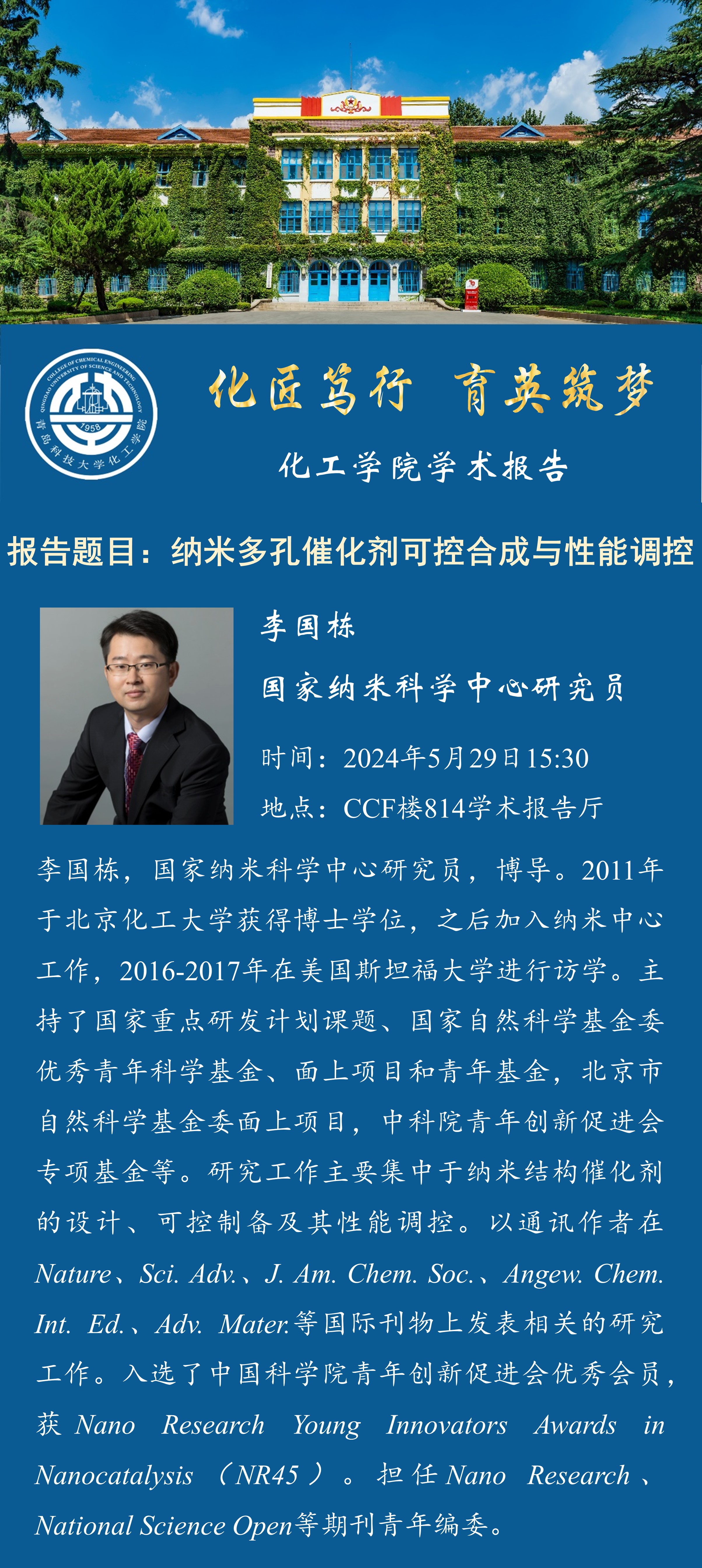 XCSport学术报告——李国栋:纳米多孔催化剂可控合成与性能调控