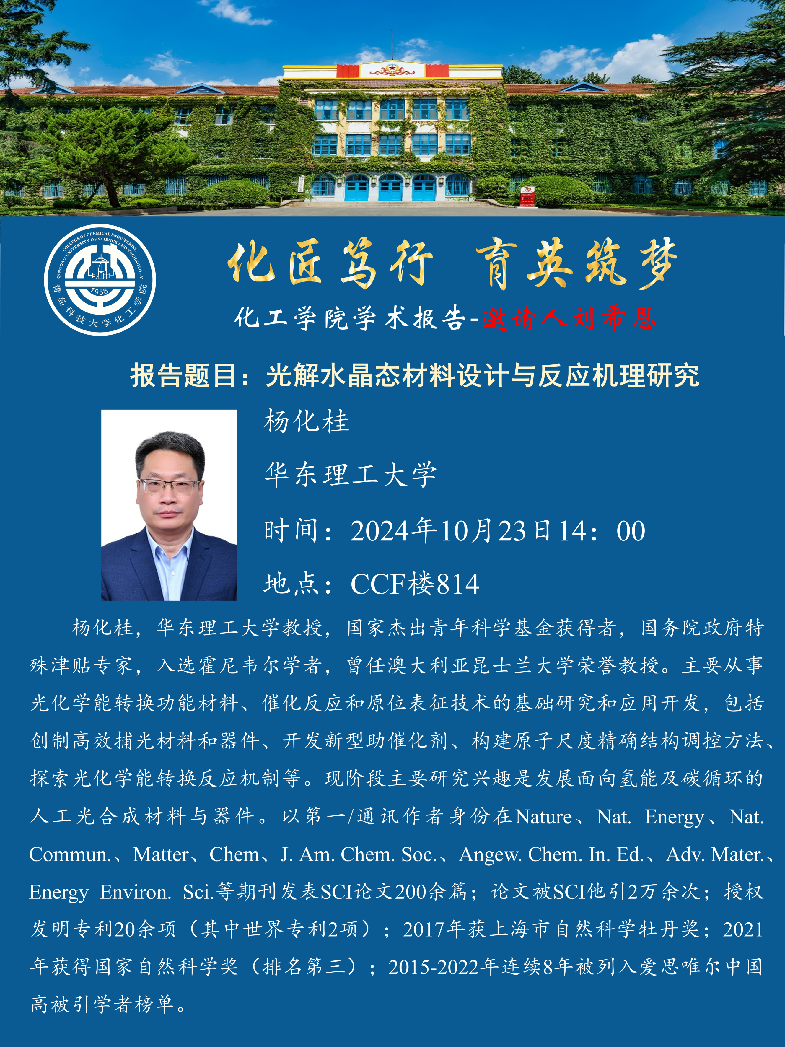 XCSport学术报告——杨化桂:光解水晶态材料设计与反应机理研究
