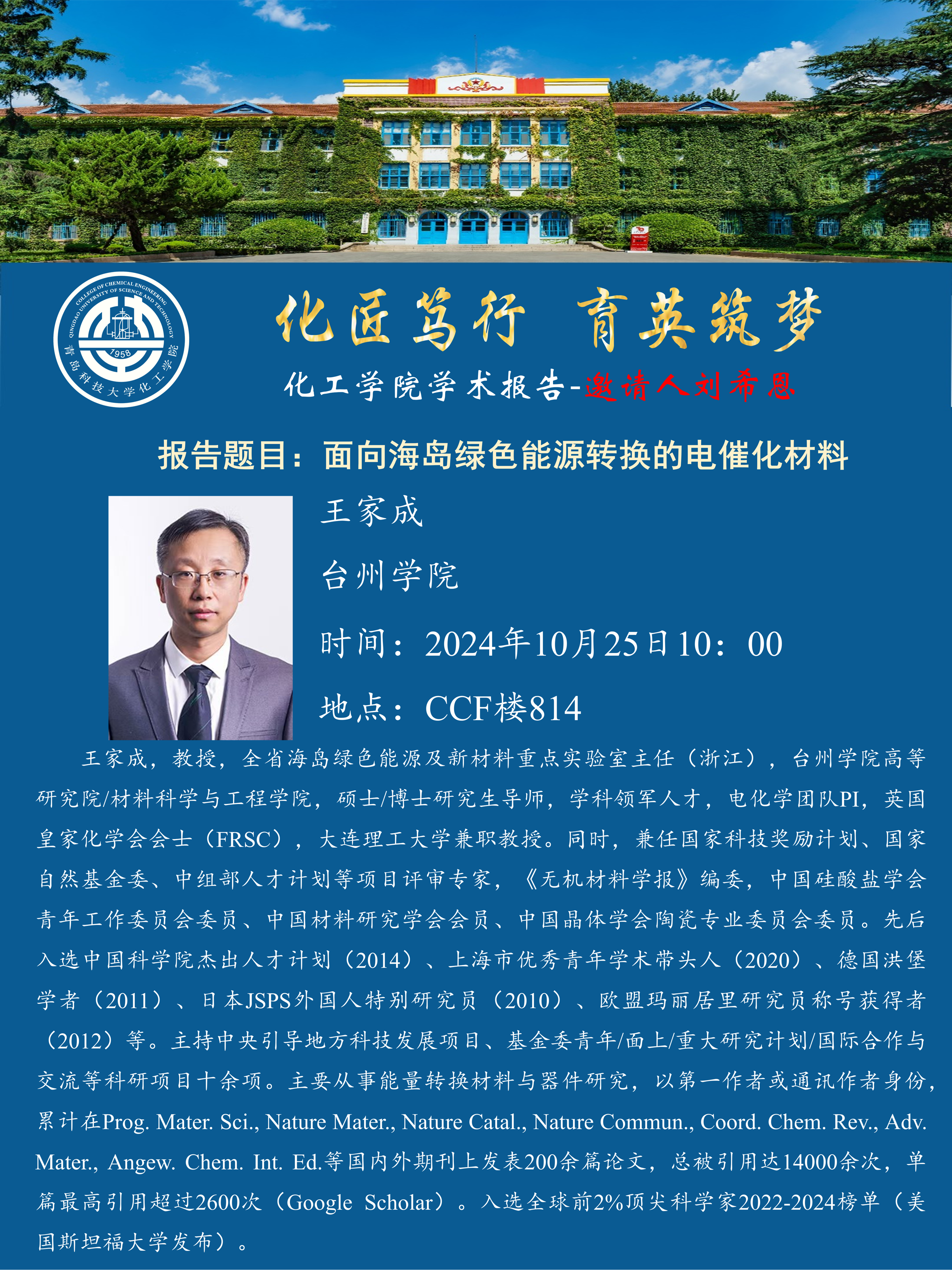 XCSport学术报告——王家成:面向海岛绿色能源转换的电催化材料