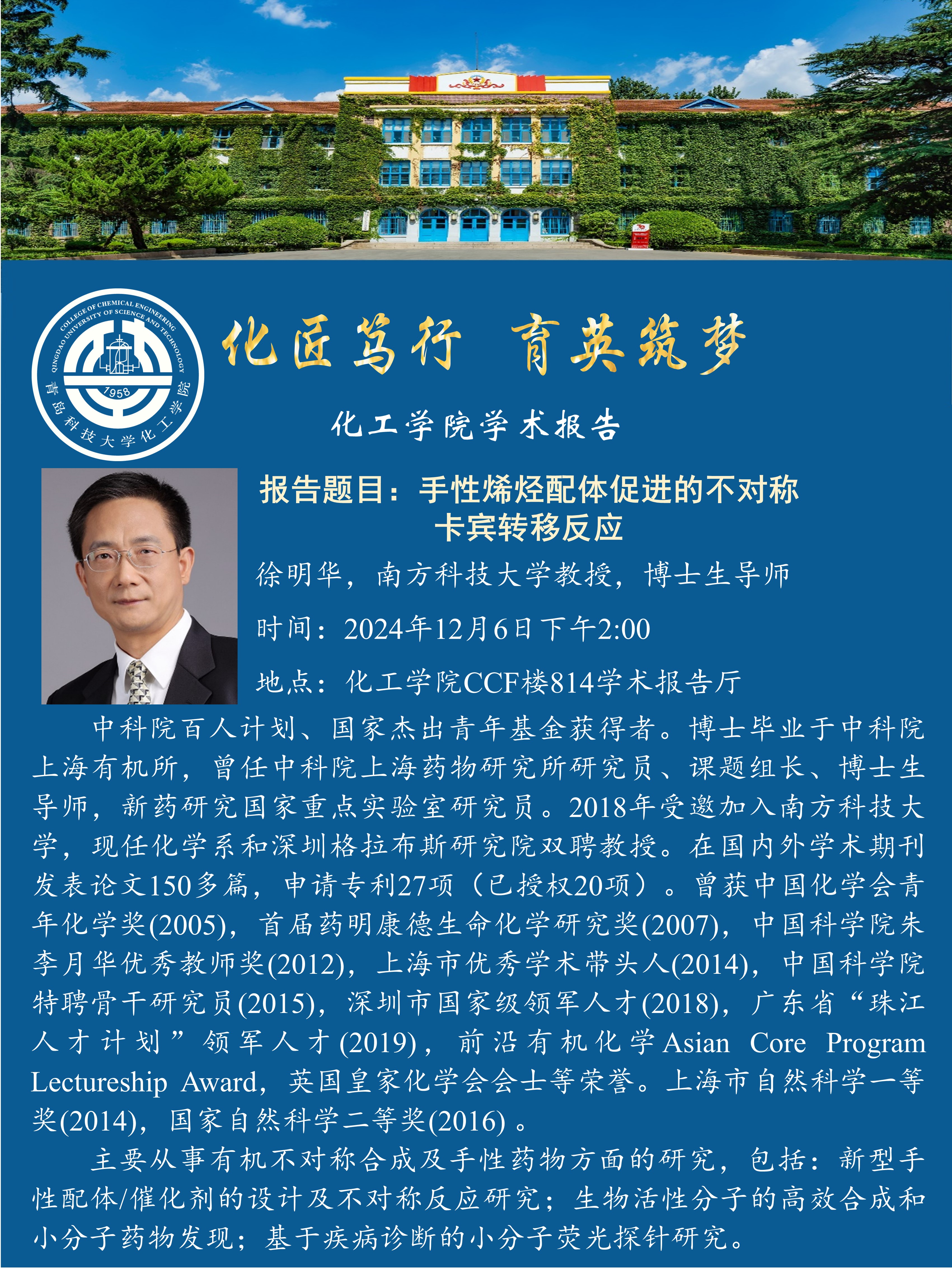 XCSport学术报告——徐明华:手性烯烃配体促进的不对称卡宾转移反应
