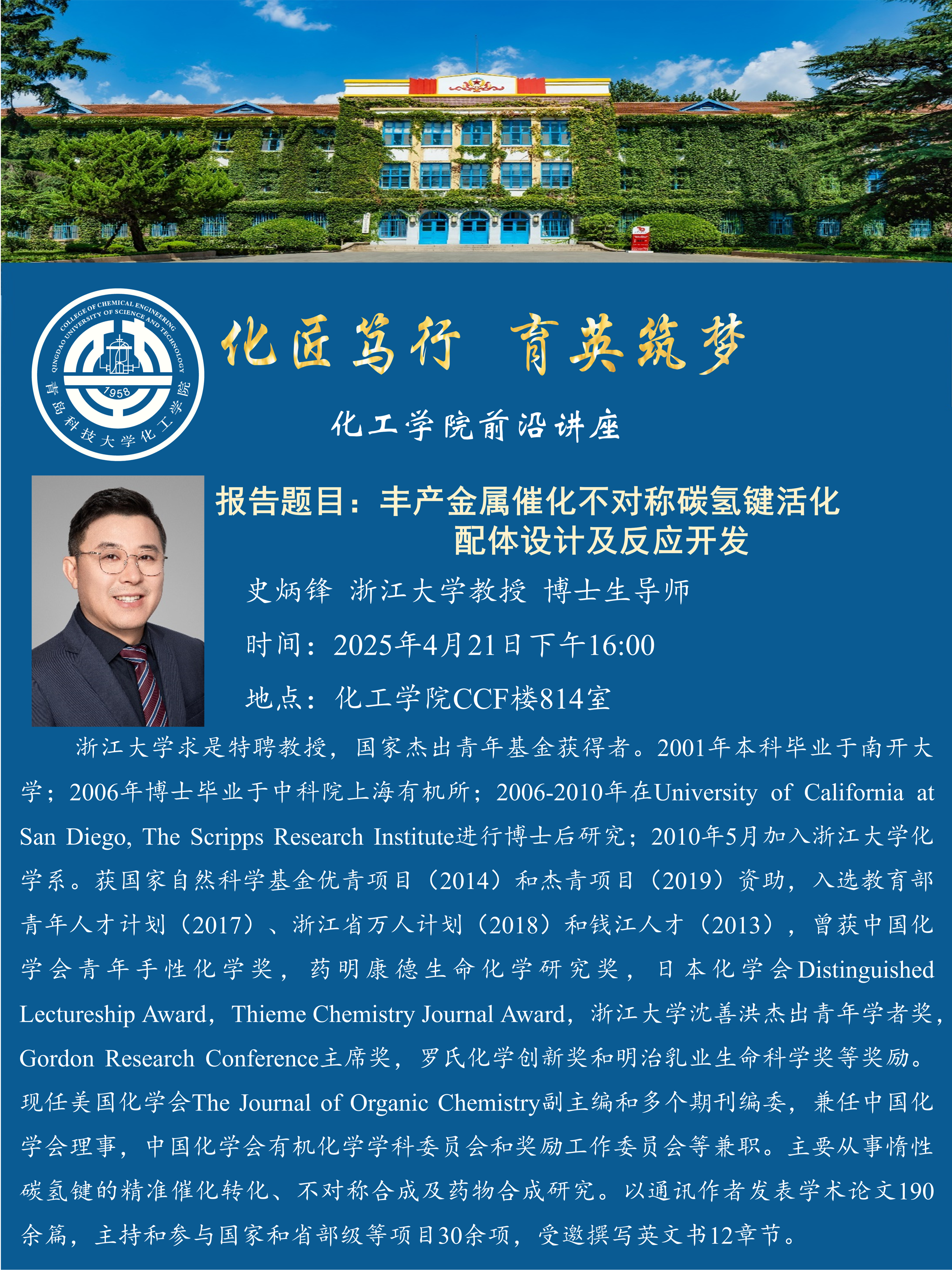 XCSport学术报告——史炳锋:丰产金属催化不对称碳氢键活化配体设计及反应开发