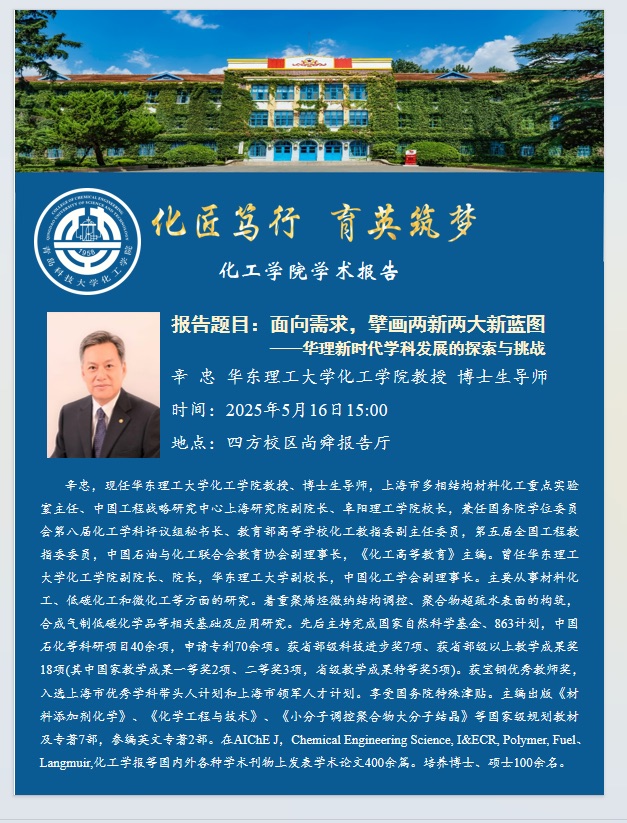 XCSport学术报告——辛忠:面向需求,擘画两新两大新蓝图--华理新时代学科发展的探索与挑战