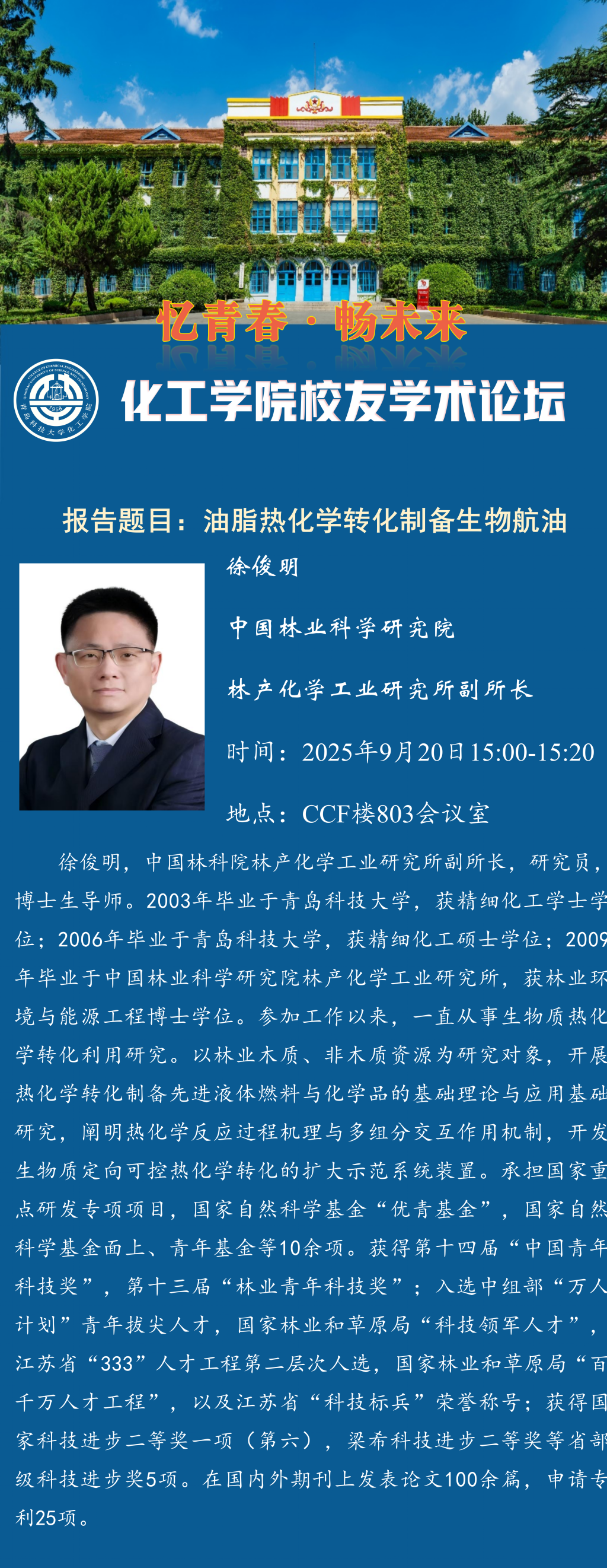 公司员工学术论坛——徐俊明:油脂热化学转化制备生物航油