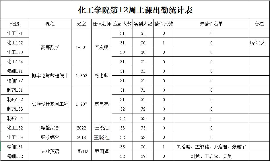 为了加强XCSport的学风建设,营造良好的学风和班风,促进公司员工的全面发展,XCSport分团委对2018-2019学年第一学期第12周本科生上课出勤情况进行了抽查,现将结果进行公布如下: