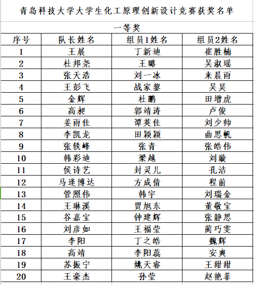 XC体育老员工化工原理创新设计竞赛获奖名单