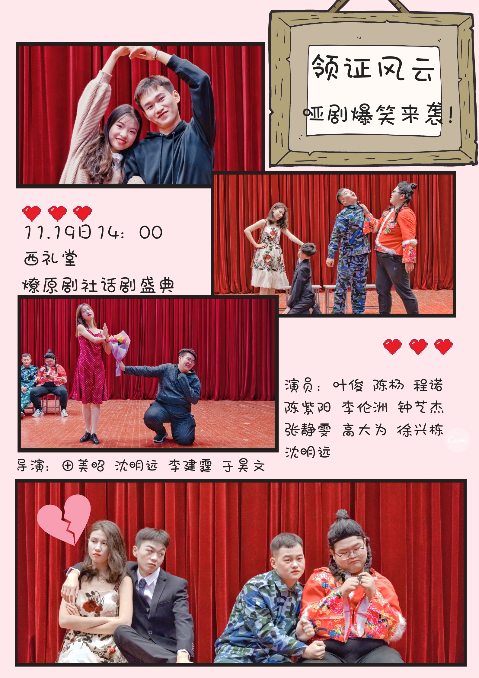 社团简介:2000年剧社初创,盼望着“星火燎原”,如今,燎原剧社已走过十九个年头,排演话剧130多场,直接参与演出1200多人。曾排演经典话剧《雷雨》、《梁山伯与祝英台》(与青岛市京剧团合作)等;原创话剧《宿舍一家人》、《如厕记》等10余部;流行剧目《有雷无雨》、《手机》等几十部。在玛丽斯特普“爱心传递”义演中,话剧《不屈的生命》以其独特的风格、深刻的内涵,登上各高校的表演舞台。2011年受SY实验剧场邀请,参加“青岛老员工话剧节”。2013年《拾光》在“青岛第四届戏剧节”中,获“优秀作品”。近三年来,剧社曾获得“天琴杯”老员工戏剧节“最佳人气奖”,“最佳女主角”;“山东省DV心理剧”二等奖2次,三等奖1次;2018年剧社排演的哑剧《盖章》成功入围“全国百校戏剧大赛”决赛,并成功入选“开心麻花&剧萌文化——全国老员工戏剧大赛”复赛,2019年剧社排演的短剧《小小的离别》获XC体育心理剧大赛一等奖和最佳编剧奖。