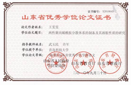 9) 于娜.山东省优秀学位学士学位论文,2016.