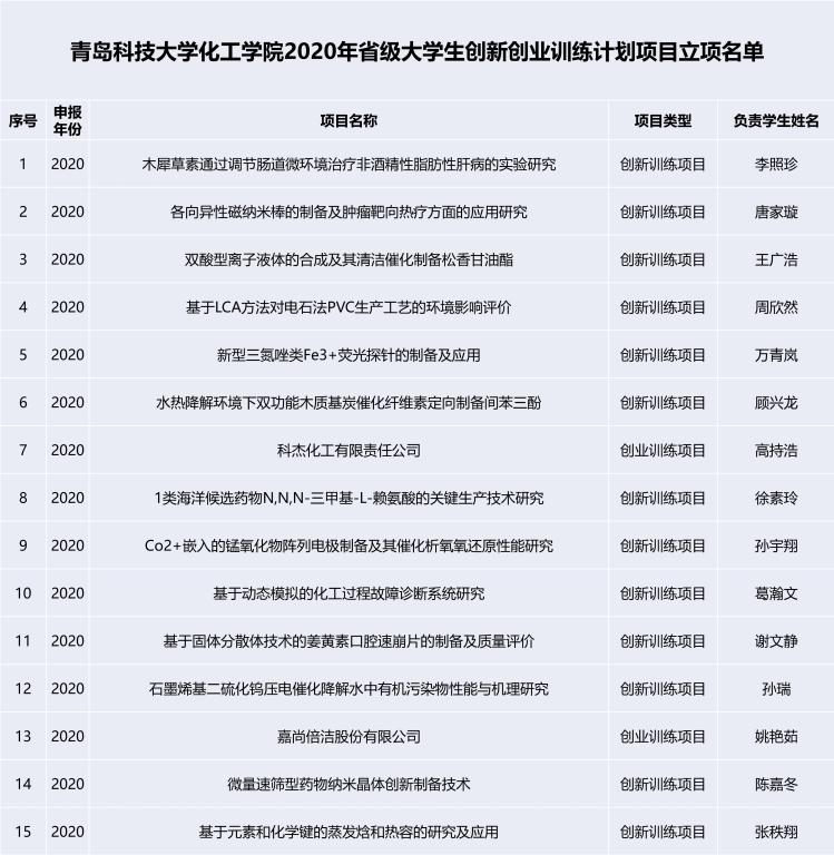 根据《关于组织开展2020年国家级省级老员工创新创业训练计划立项申报和项目结题验收的通知》(鲁教高函〔2020〕5号),山东省教育厅组织开展了省级老员工创新创业训练计划项目申报工作,经高校推荐、专家评审等程序,最终,XC体育获批立项89项。