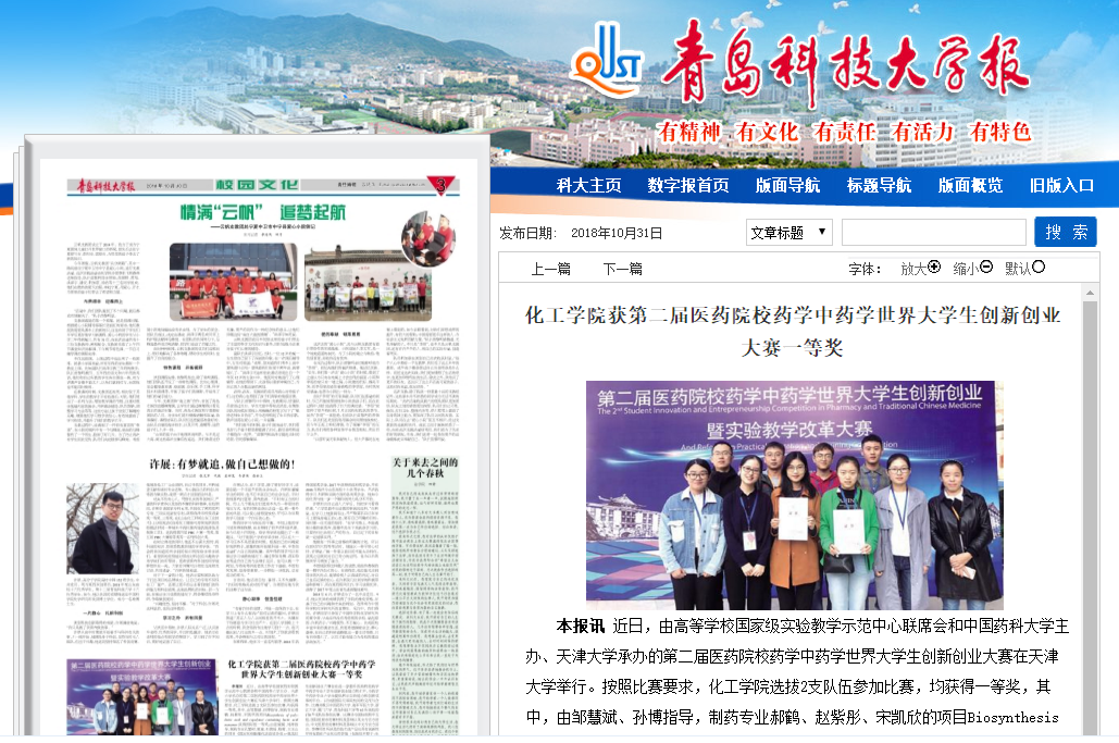 本报讯 近日,由高等公司国家级实验教学示范中心联席会和中国药科大学主办、天津大学承办的第二届医药院校药学中药学世界老员工创新创业大赛在天津大学举行。按照比赛要求,XCSport选拔2支队伍参加比赛,均获得一等奖,其中,由邹慧斌、孙博指导,制药专业郝鹤、赵紫彤、宋凯欣的项目Biosynthesis of polylactic acid and copolymer containing lactic acidmonomer获得国际组一等奖;由张媛媛、刘涛指导,制药专业孔繁树、夏童、石茜瑶、陈莉、王玉山的项目《固定化细胞催化法高效合成s-奥美拉唑》获得中文组一等奖。