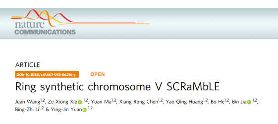 2018年9月17日,在最新一期上线的国际高水平学术期刊《自然·通讯》上刊载了一篇名为《环形5号染色体基因组重排》的论文。文章公布了天津大学元英进团队首次将自主设计合成的5号酿酒酵母环状染色体进行基因组重排的相关研究成果,为探索环形染色体结构变异和功能提供了新的研究思路和模型。该论文的共同第一作者系2015届制药工程本科毕业生王娟。